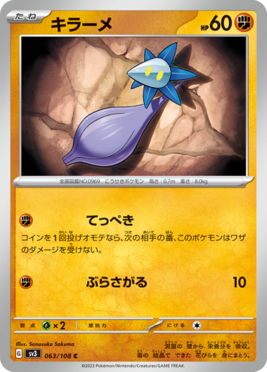 進化後の《キラフロルex》の性能を鑑みると、拡張パック『スノーハザード』に収録された《キラーメ(かくせい)》を使いたいので、採用の機会は多くなさそうです。