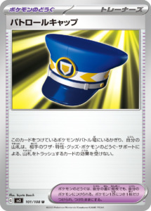 《パトロールキャップ》を付けたポケモンがバトル場にいると、相手のあらゆるカードからデッキ破壊を守ってくれます。