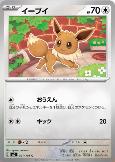 《イーブイ》はHP70でにげるエネルギーが1つと使いやすい性能です。