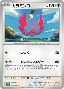 「シンクロフェザー」はベンチに《カラミンゴ》がいると、相手のベンチポケモンにも攻撃が出来るようになります。