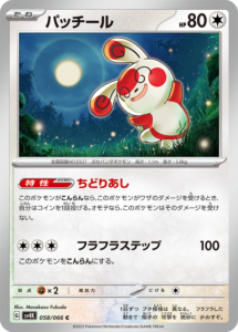 自分のサイド枚数が相手よりも多いとき、《まけんきチョッキ》を付けたポケモンが相手のポケモンから受けるワザのダメージを「-40」します。
