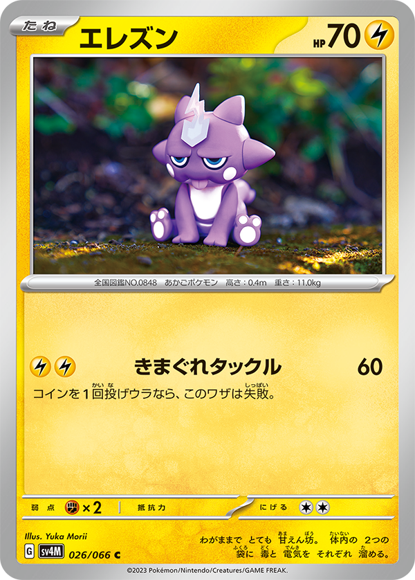《エレズン》はワザ「きまぐれタックル」でコイントスでオモテを出すと60ダメージを与えられます。