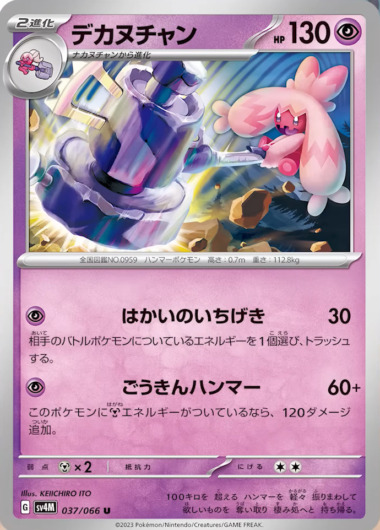 ワザ「はかいのいちげき」は相手のバトルポケモンについているエネルギーを1つトラッシュ出来ます。