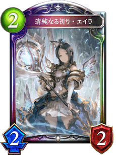 先ほどもあげた《清純なる祈り・エイラ》(転生版エイラ)は、2/2/2守護を持ちながら進化をすると《エイラの祈祷》を置くカードです。
